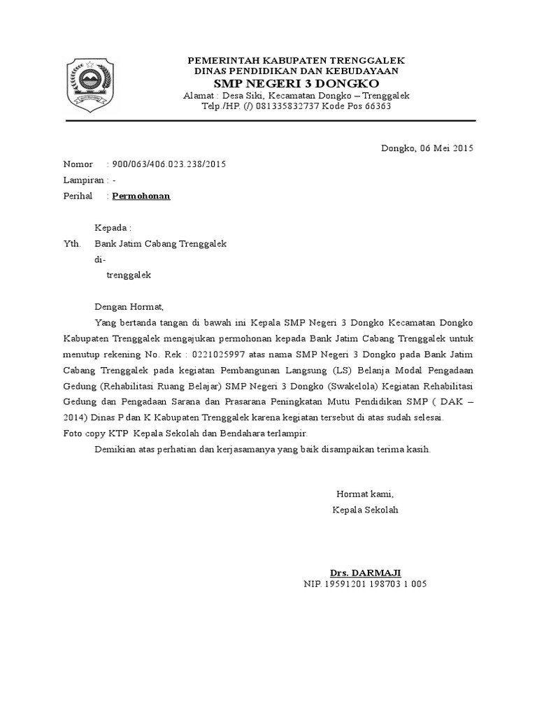 1. Buatlah surat kuasa penampungan rekening dengan menggunakan kertas biasa atau komputer.